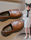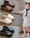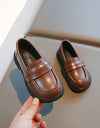 Sleek and smart, these loafers feature a double strap detail across the vamp with a subtle gloss finish. Easy slip-on design makes them perfect for school days and formal outings.