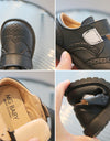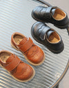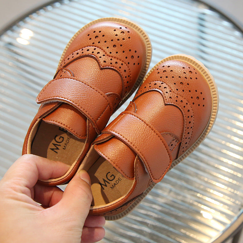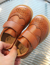 Lovely brogues style shoe for kids, with perforated design detail and leather finish. Can be matched on cooperate and native attires for dapper look, works perfect as school shoes too. Comfortable and light, with Velcro strap.