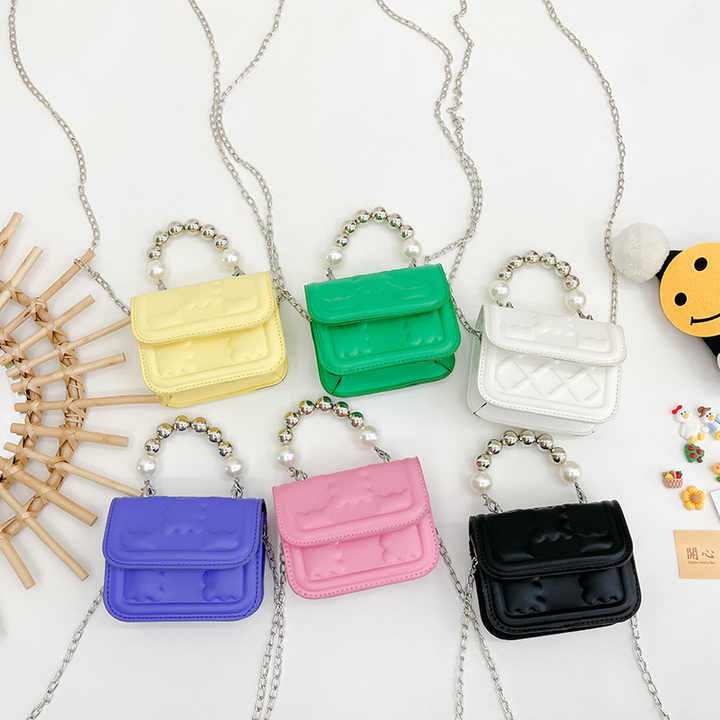 This mini shoulder bag for toddler girls is the perfect blend of fashion and practicality. Crafted from high quality rubber, this solid-colored bag offers a chic and trendy look, while the short beaded handle and long chain strap adds function and fun. The magnetic in-lock provides easy access and secure closure, while the rubber construction is both durable and easy to clean, making this bag a practical choice for busy little ones.