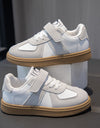 Another classic from our SAMBA inspired collection. These stylish low-top sneakers combine suede and synthetic textures with sporty stripe accents. Finished with a secure hook-and-loop strap and durable rubber soles. Perfect for boys and girls on the move.